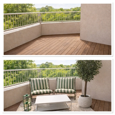 Je transforme les biens immobiliers pour les rendre plus attractifs avec le home staging virtuel sur photo, mise en scène éphémère avec mon mobilier et aménagement de logements vides pour créer un coup de coeur lors de la vente